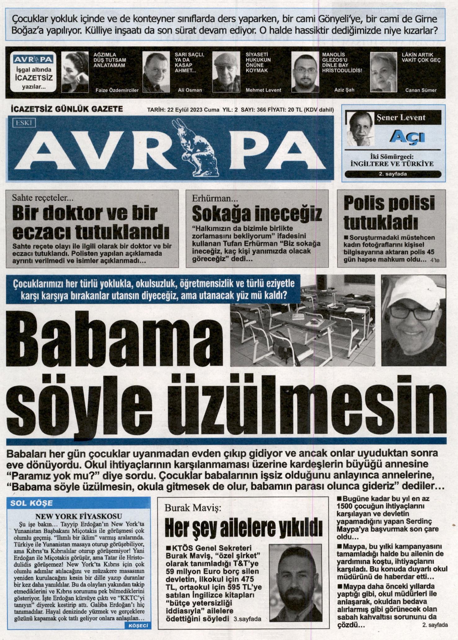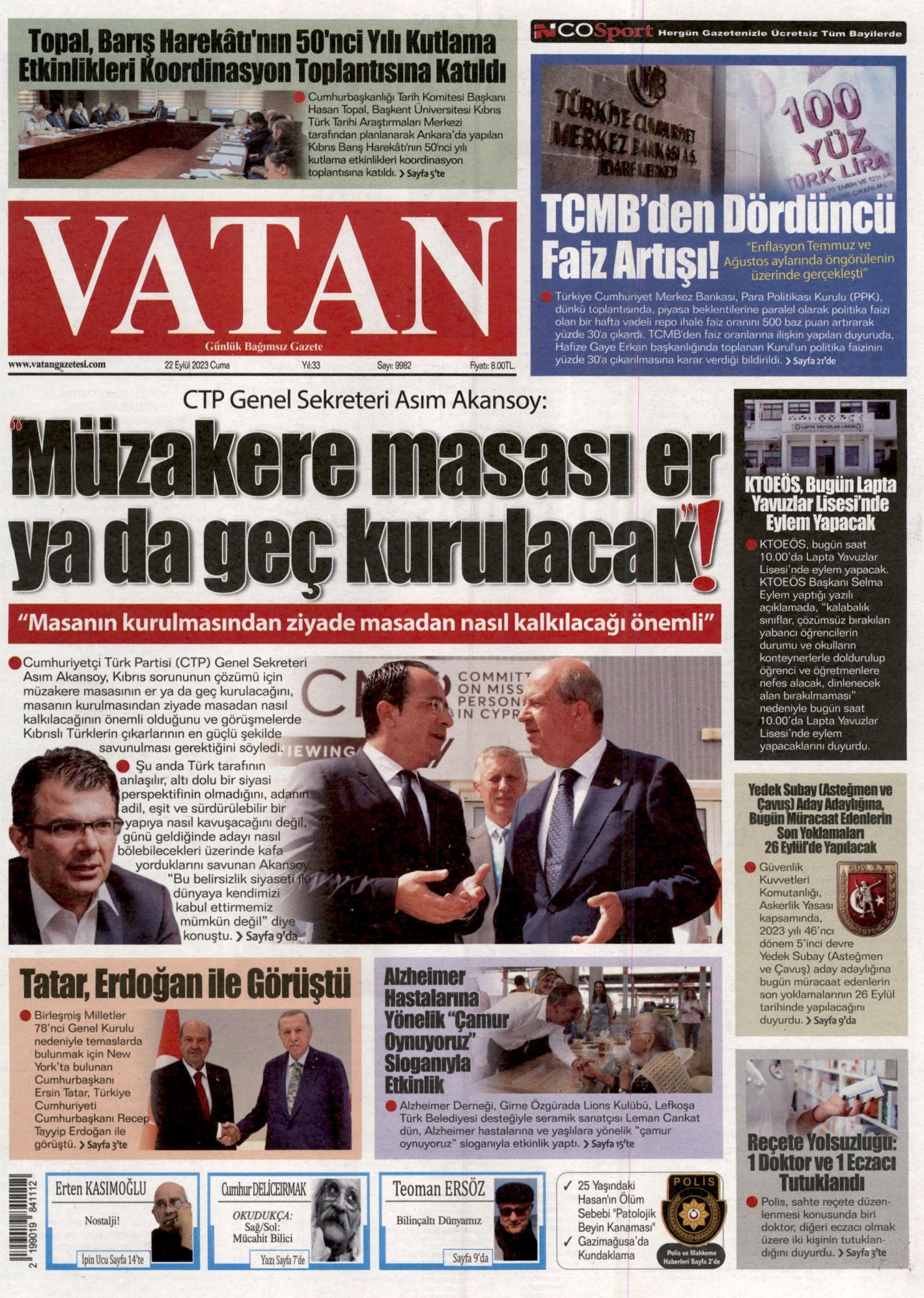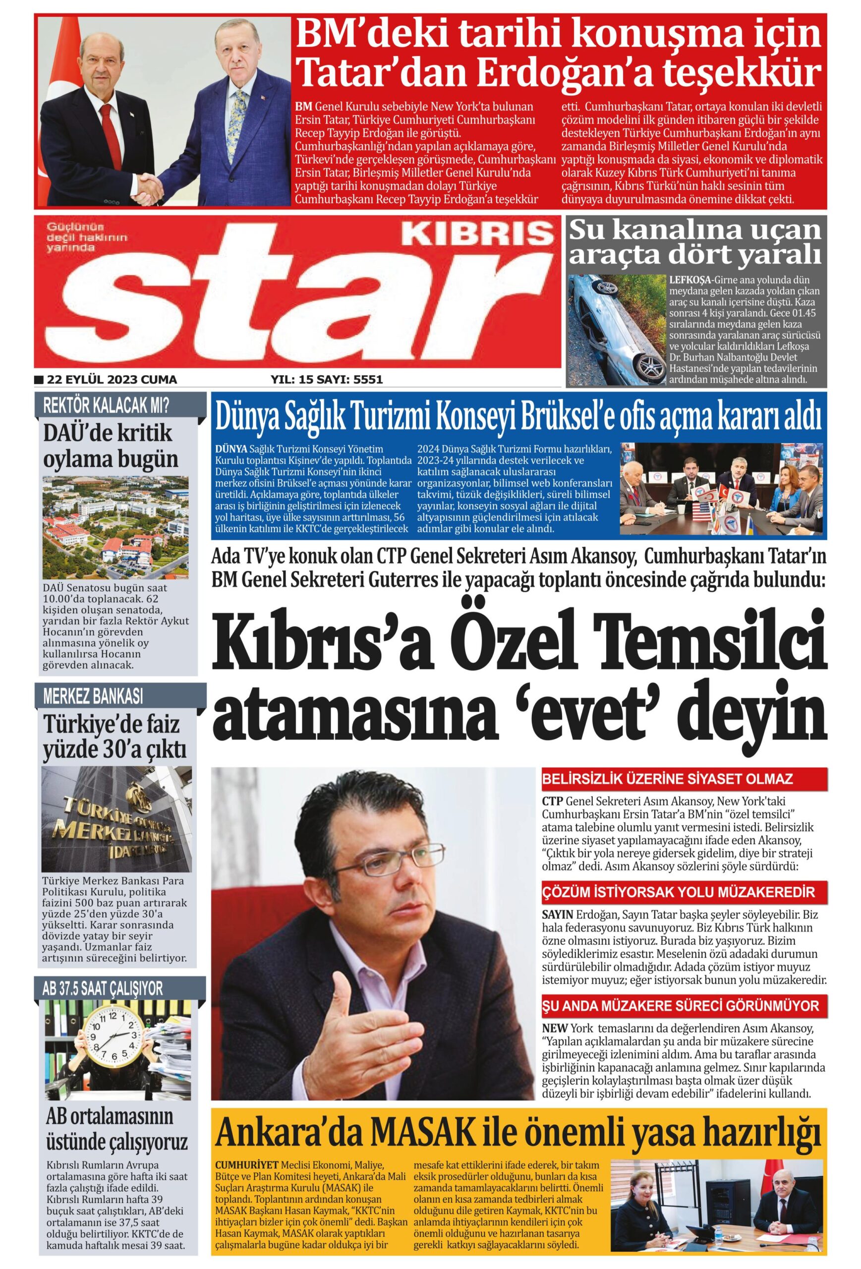 Gazete Manşetleri – 22 Eylül 2023 Cuma