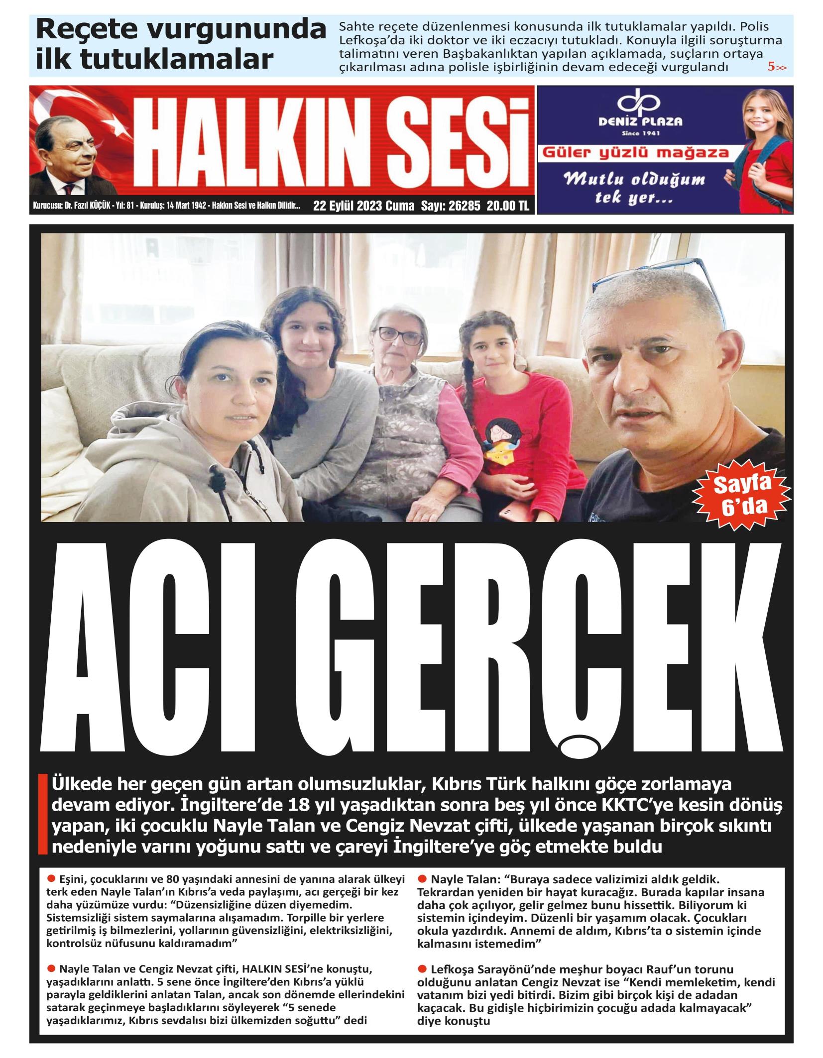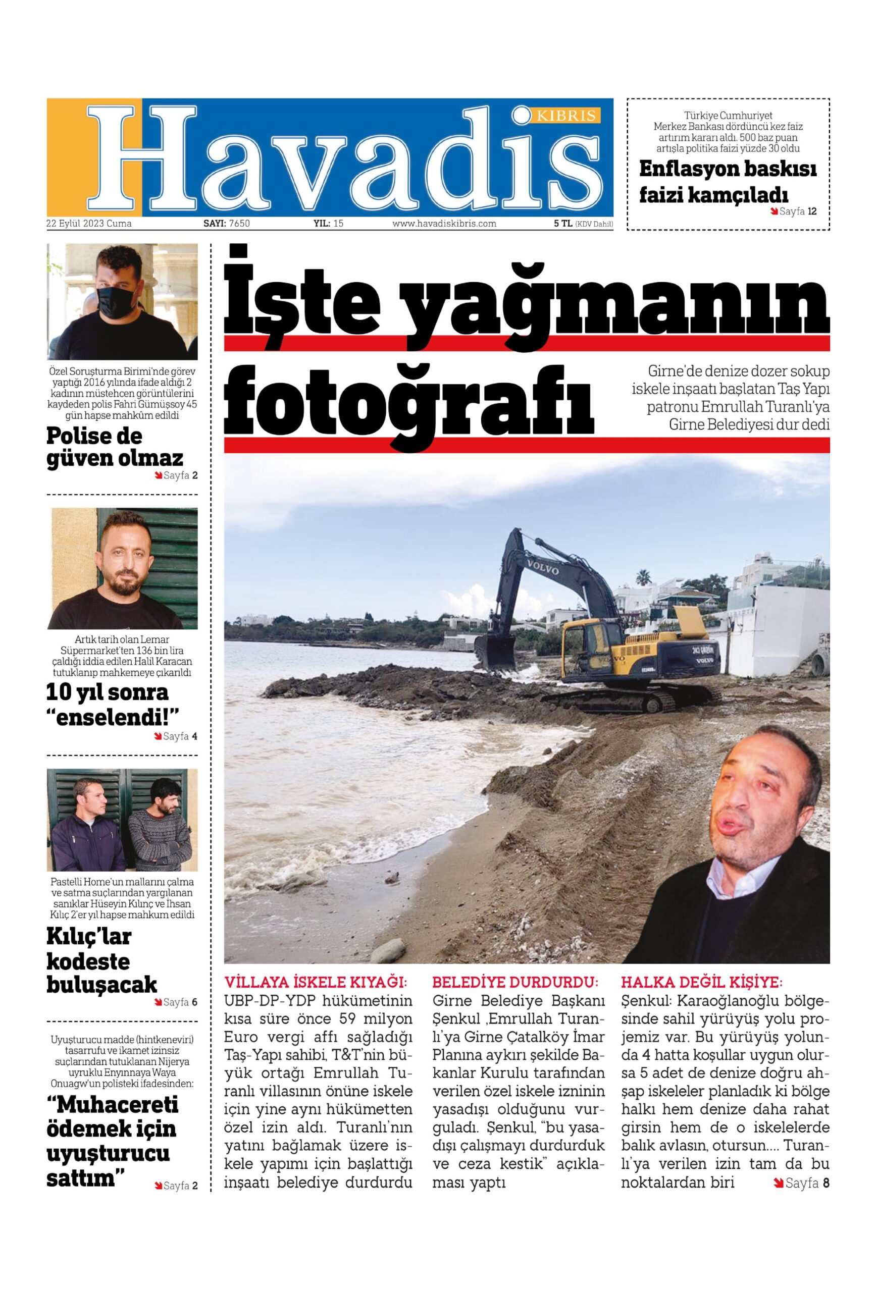 22 Eylül 2023 Cuma gazete ön sayfaları