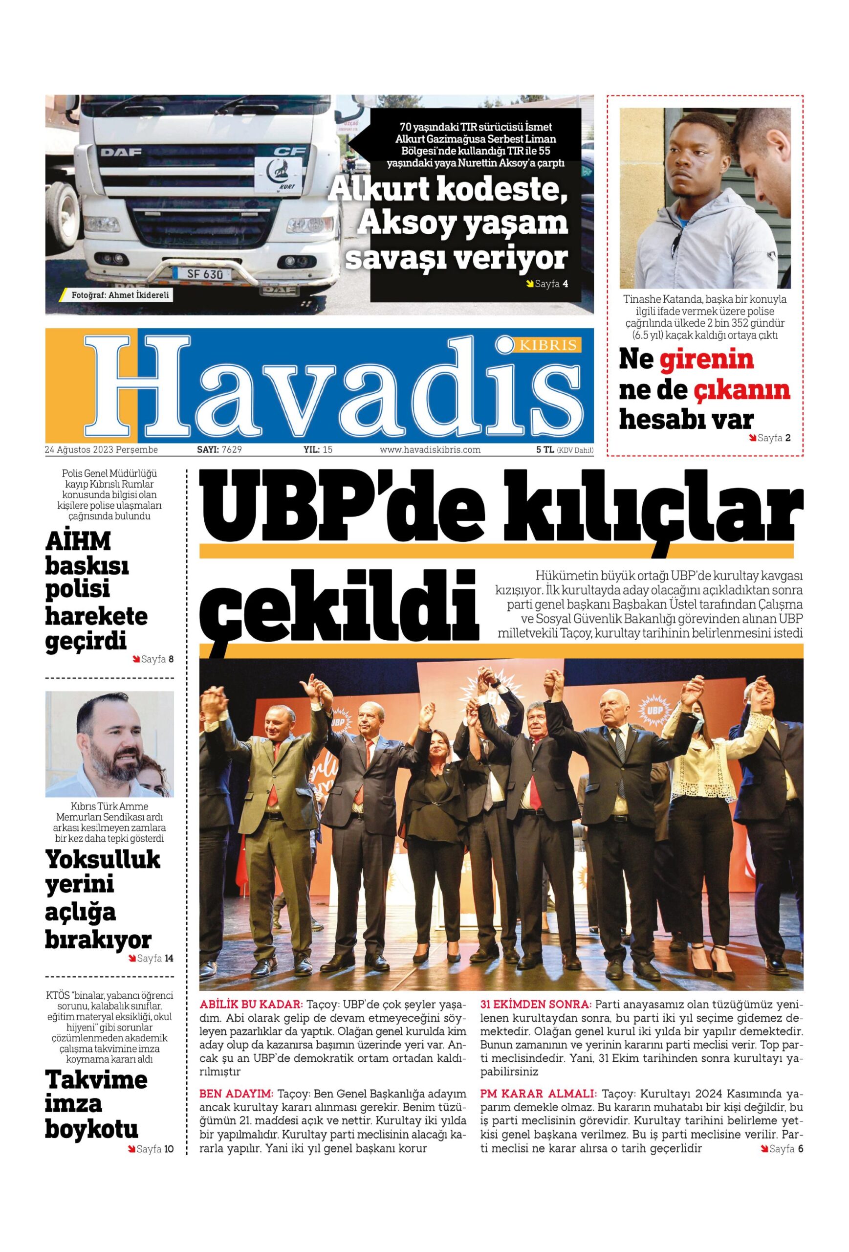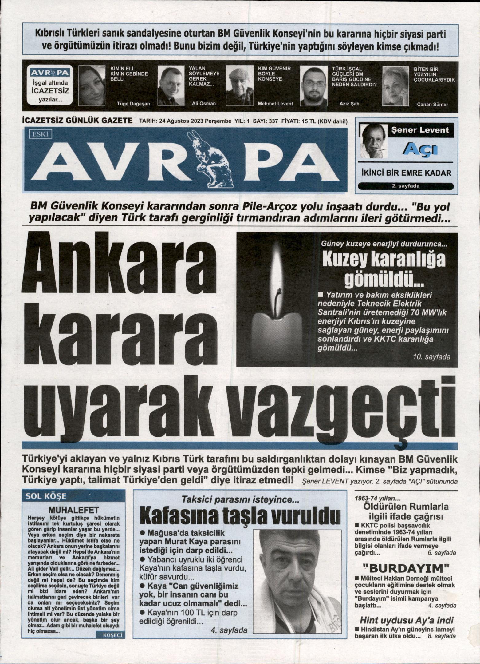 24 Ağustos 2023 Perşembe gazete ön sayfaları: