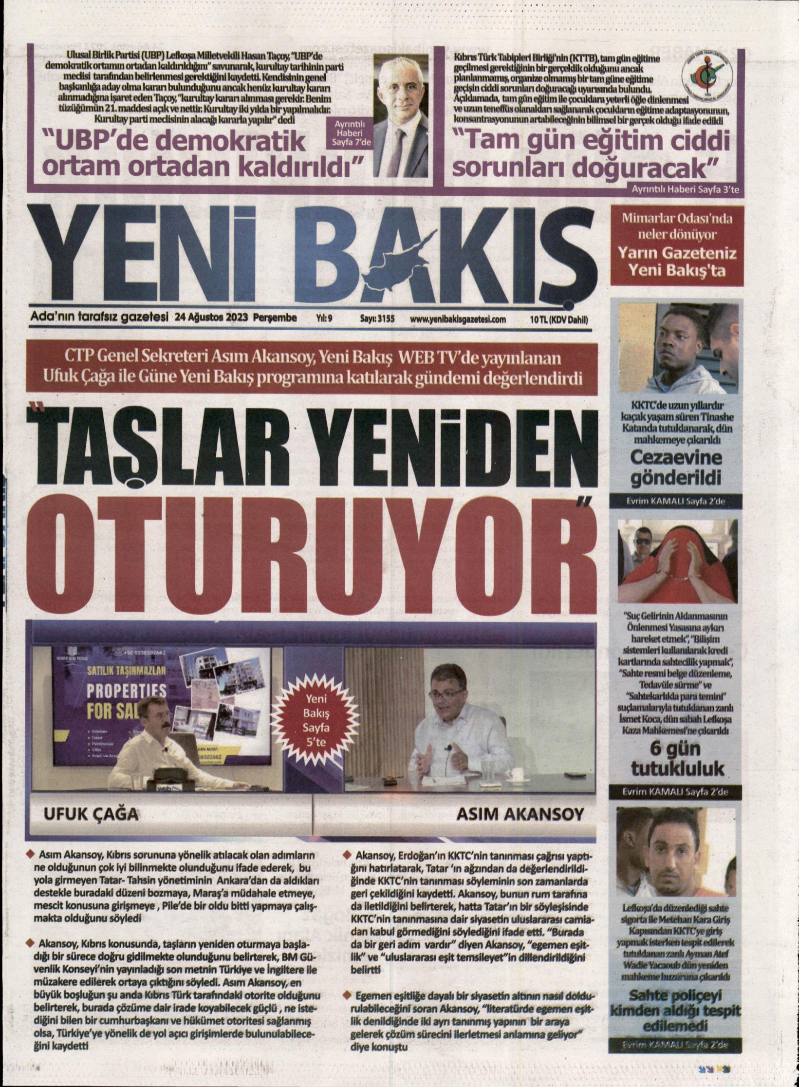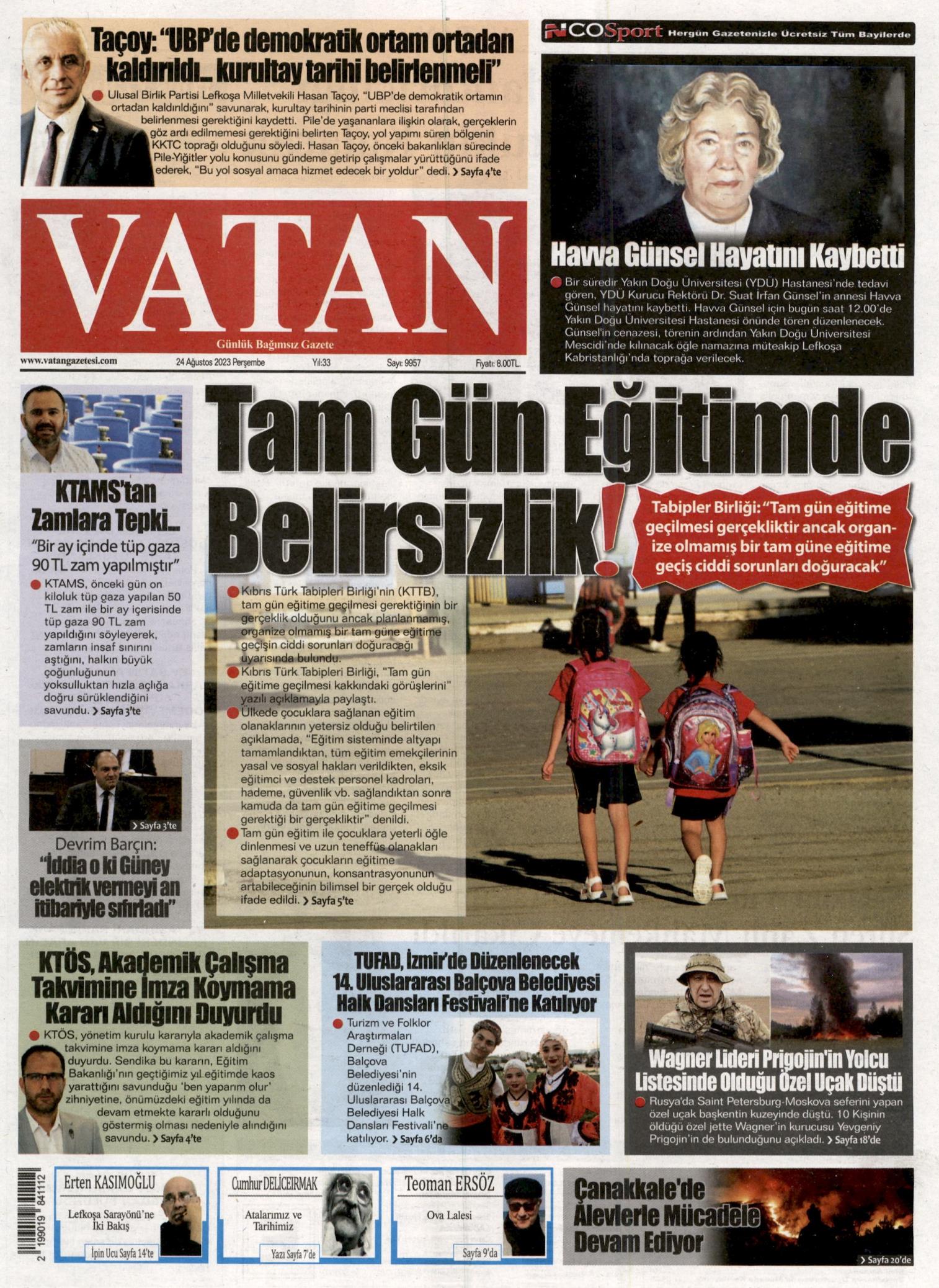 Gazete Manşetleri – 24 Ağustos 2023