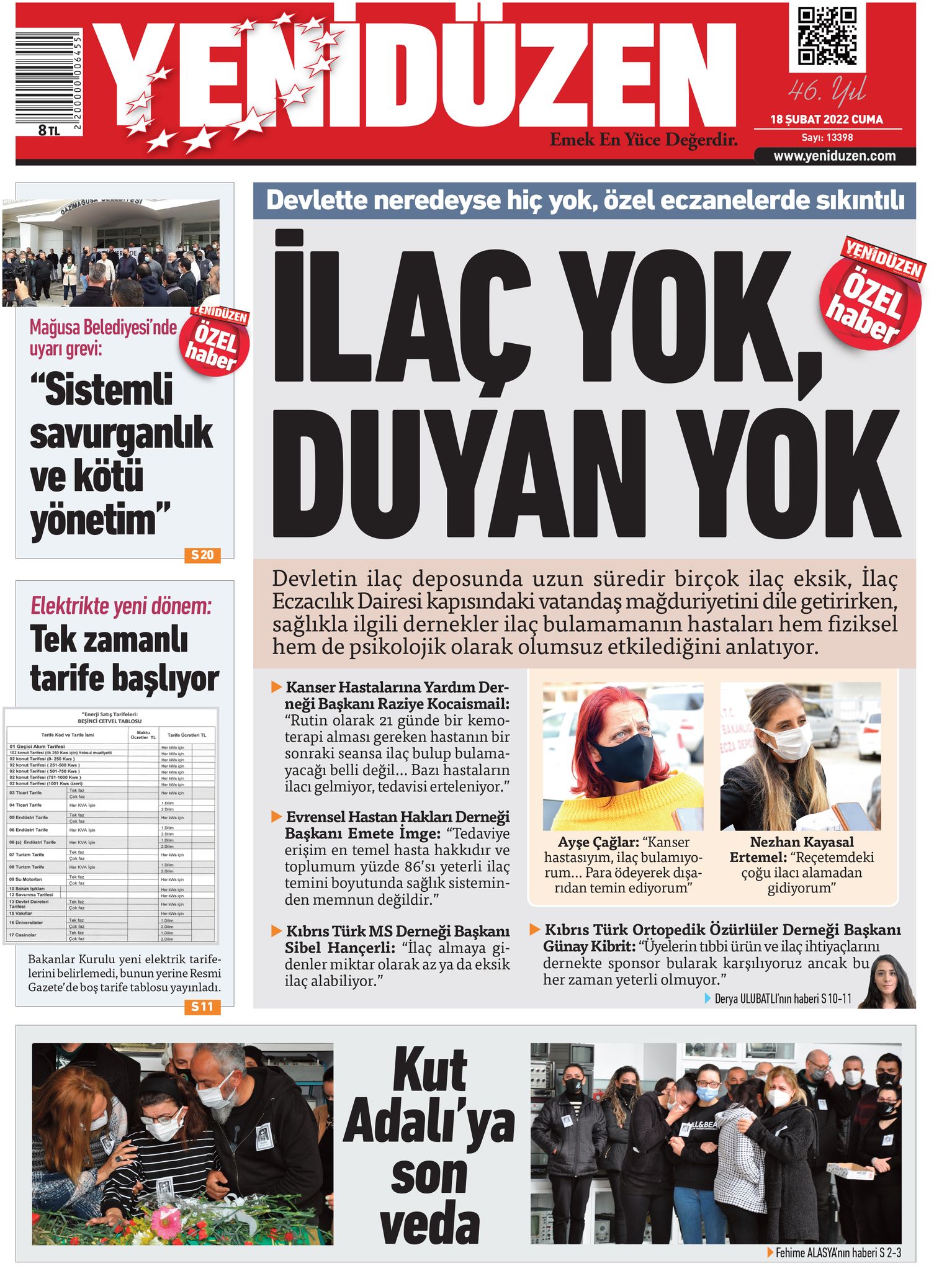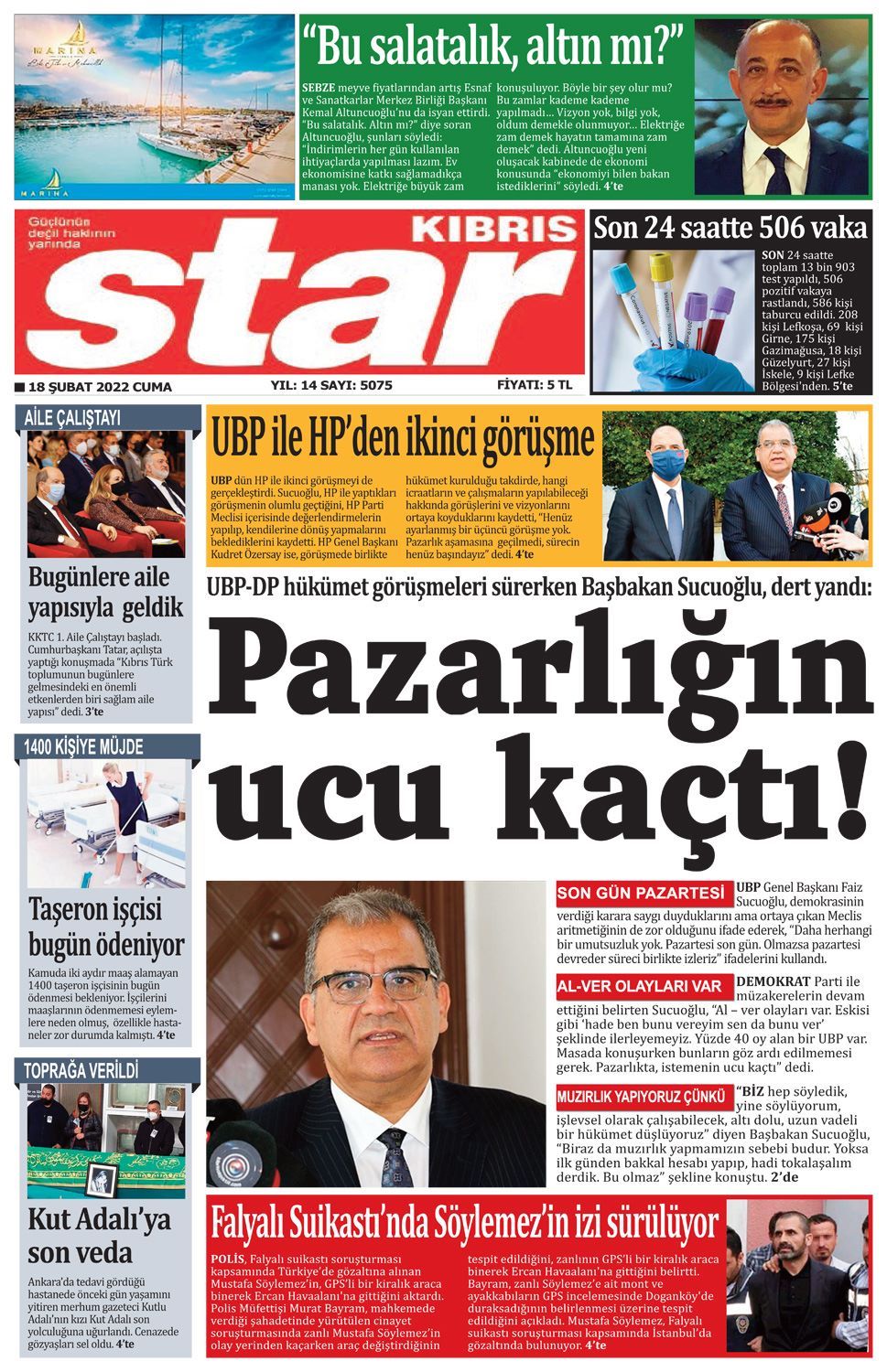 18 Şubat 2022 Cuma gazete ön sayfaları: