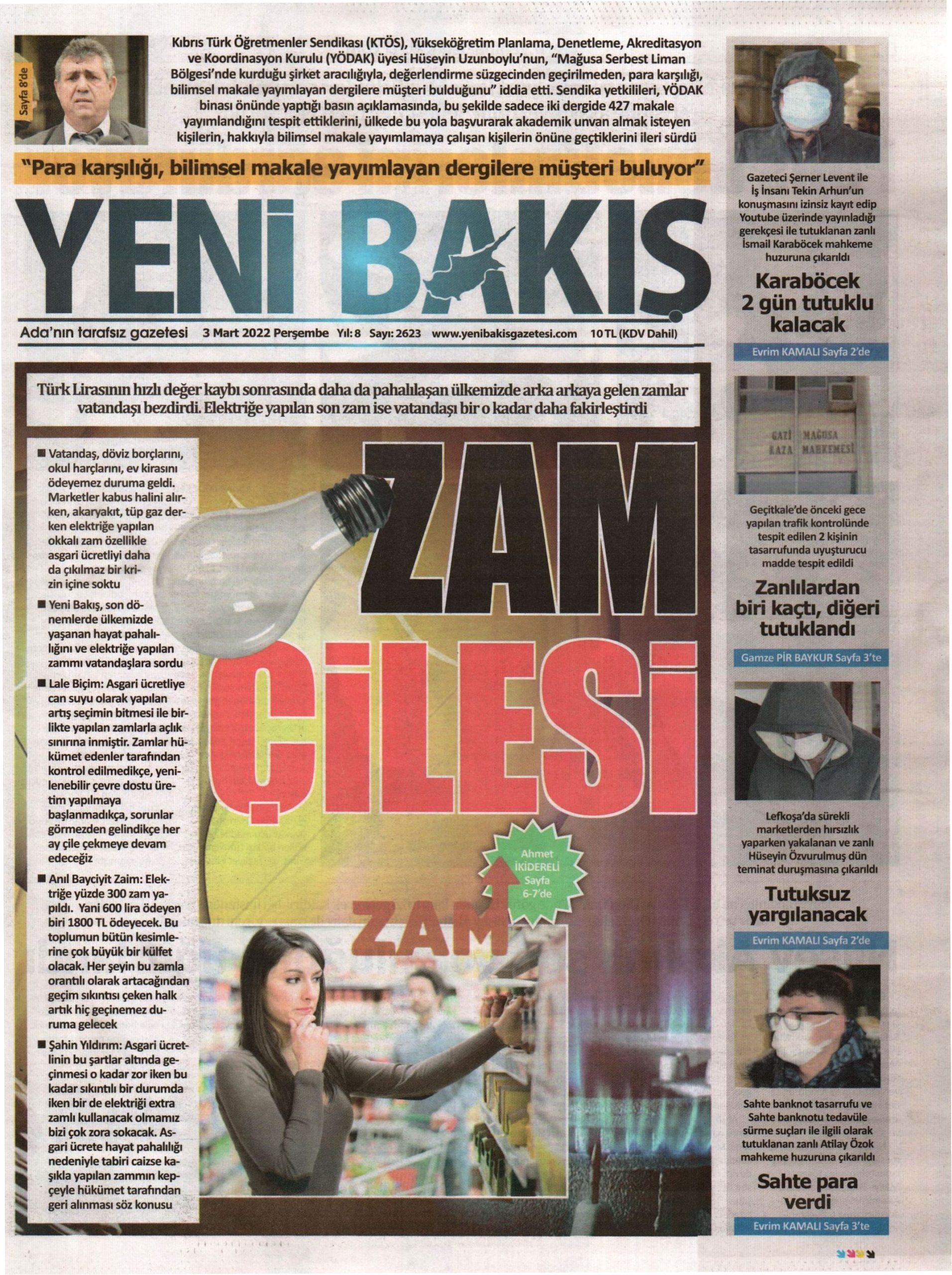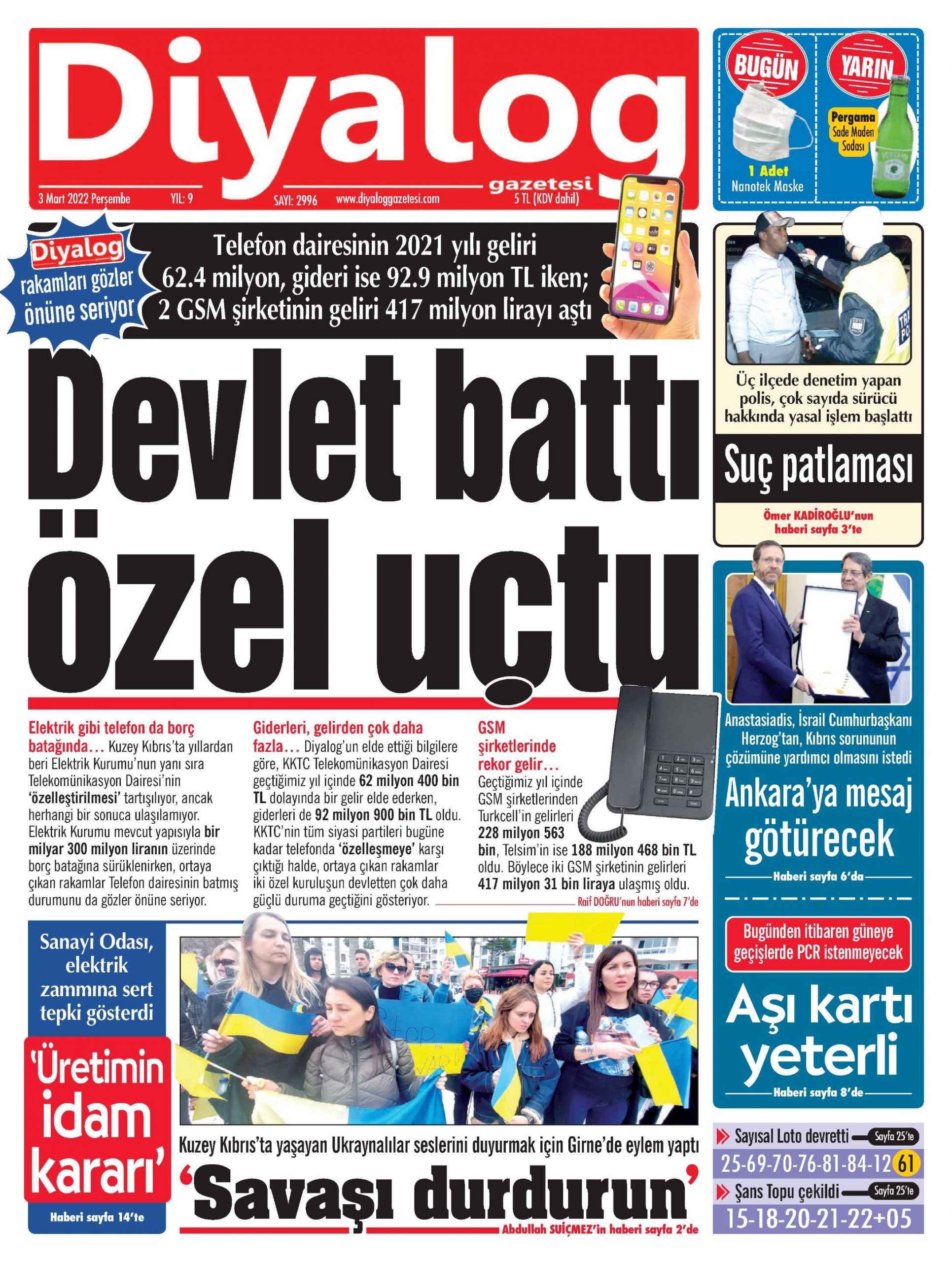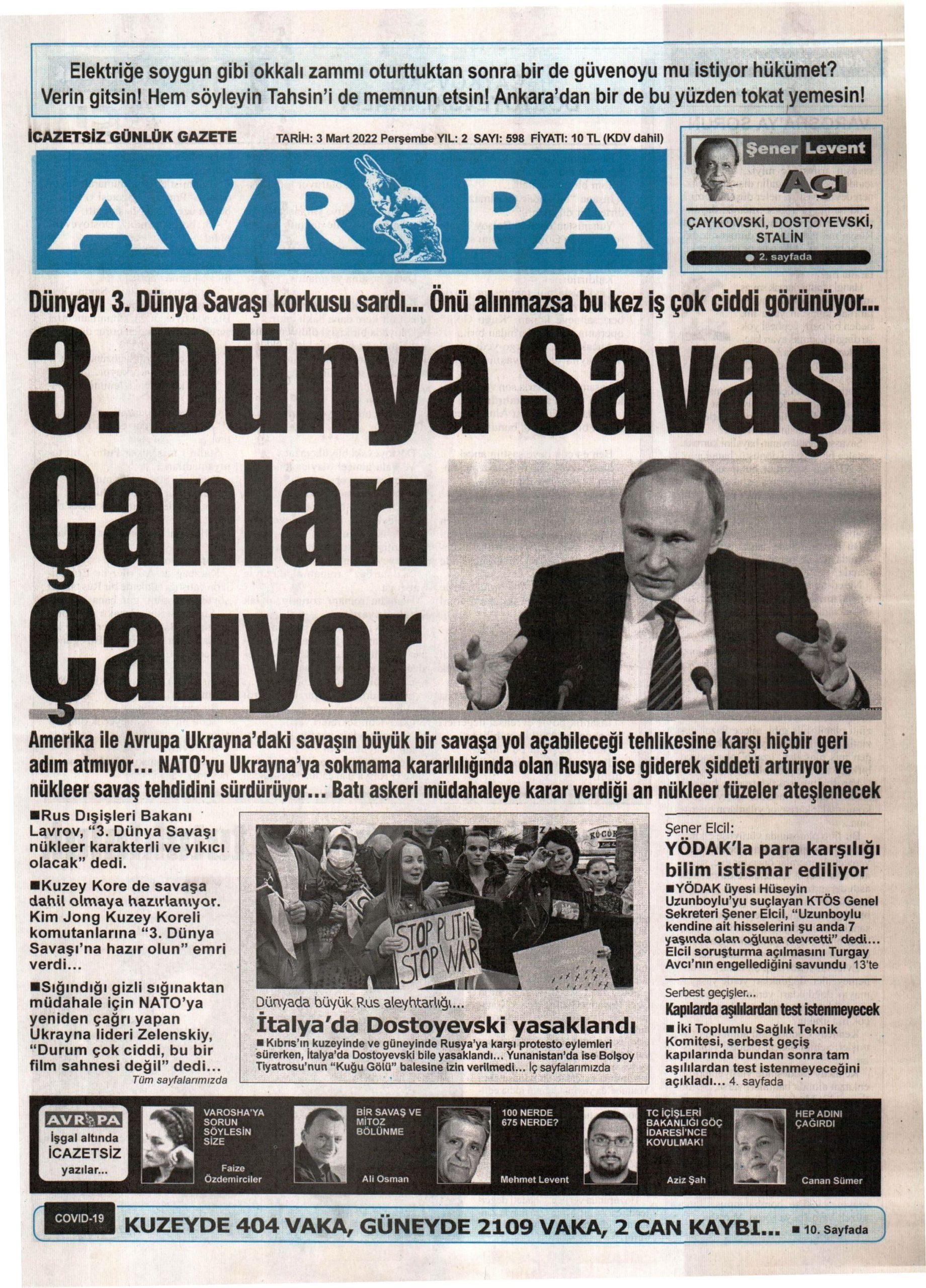 3 Mart 2022 Perşembe gazete ön sayfaları: