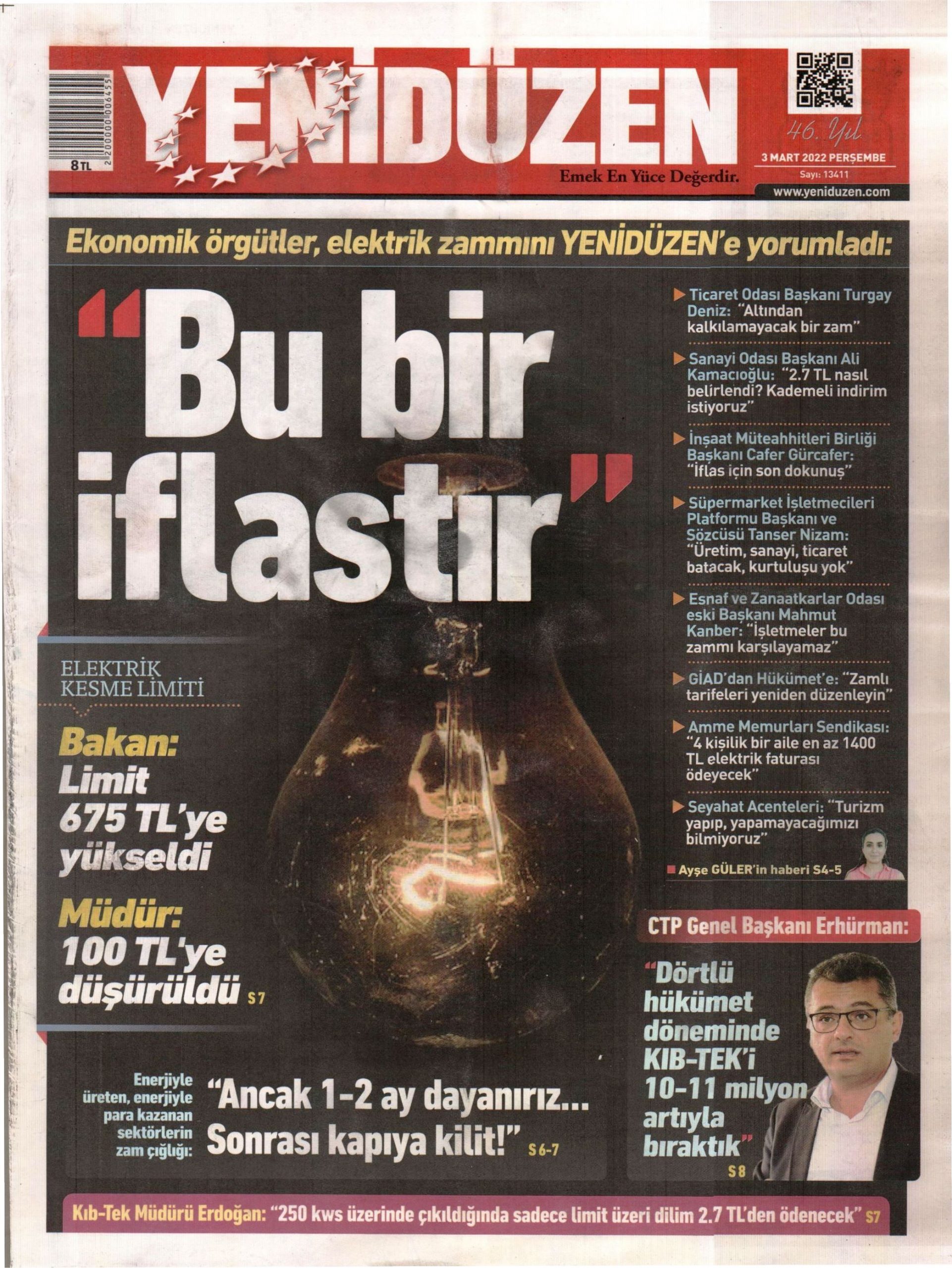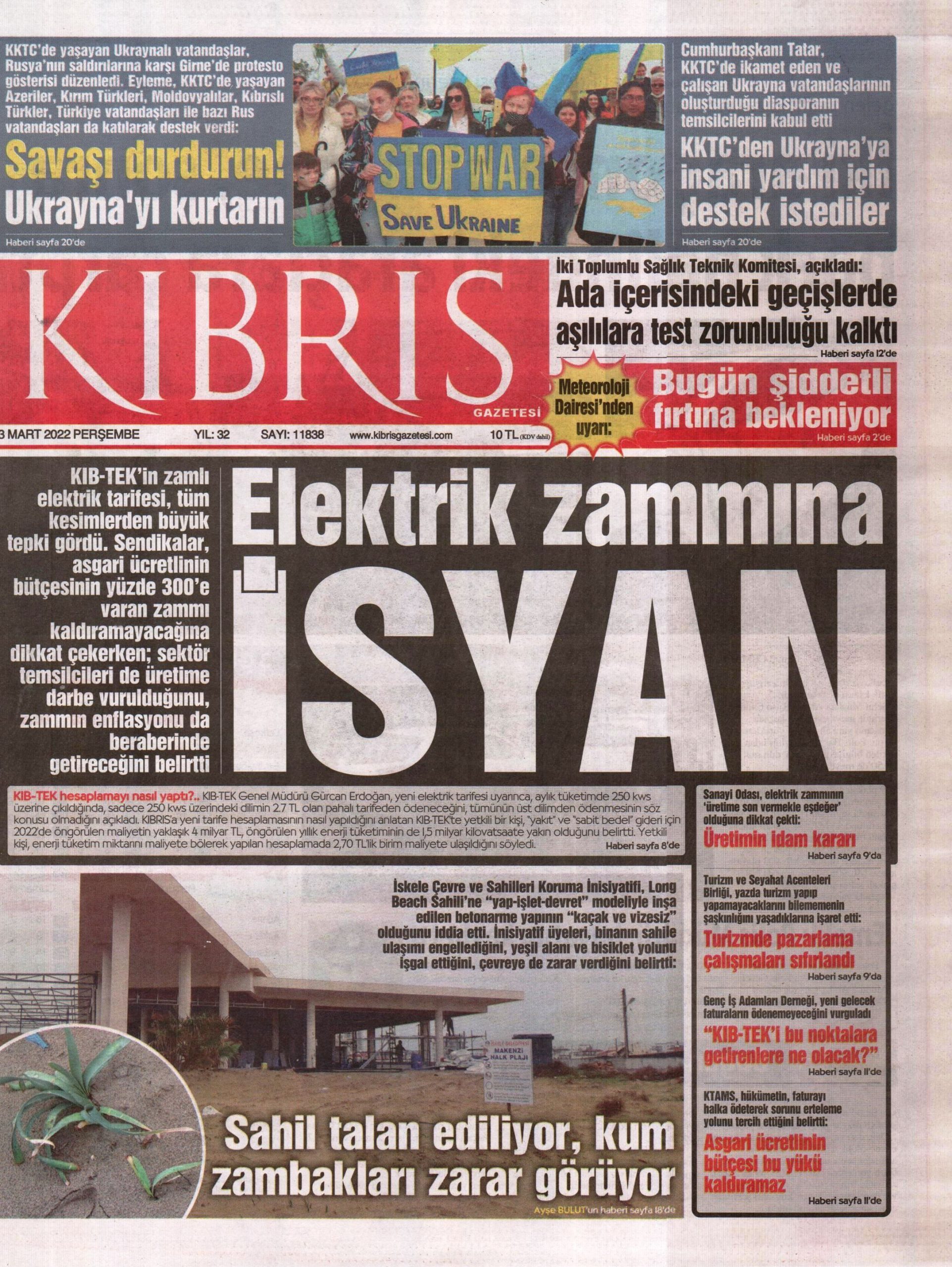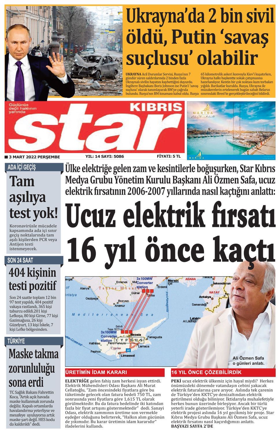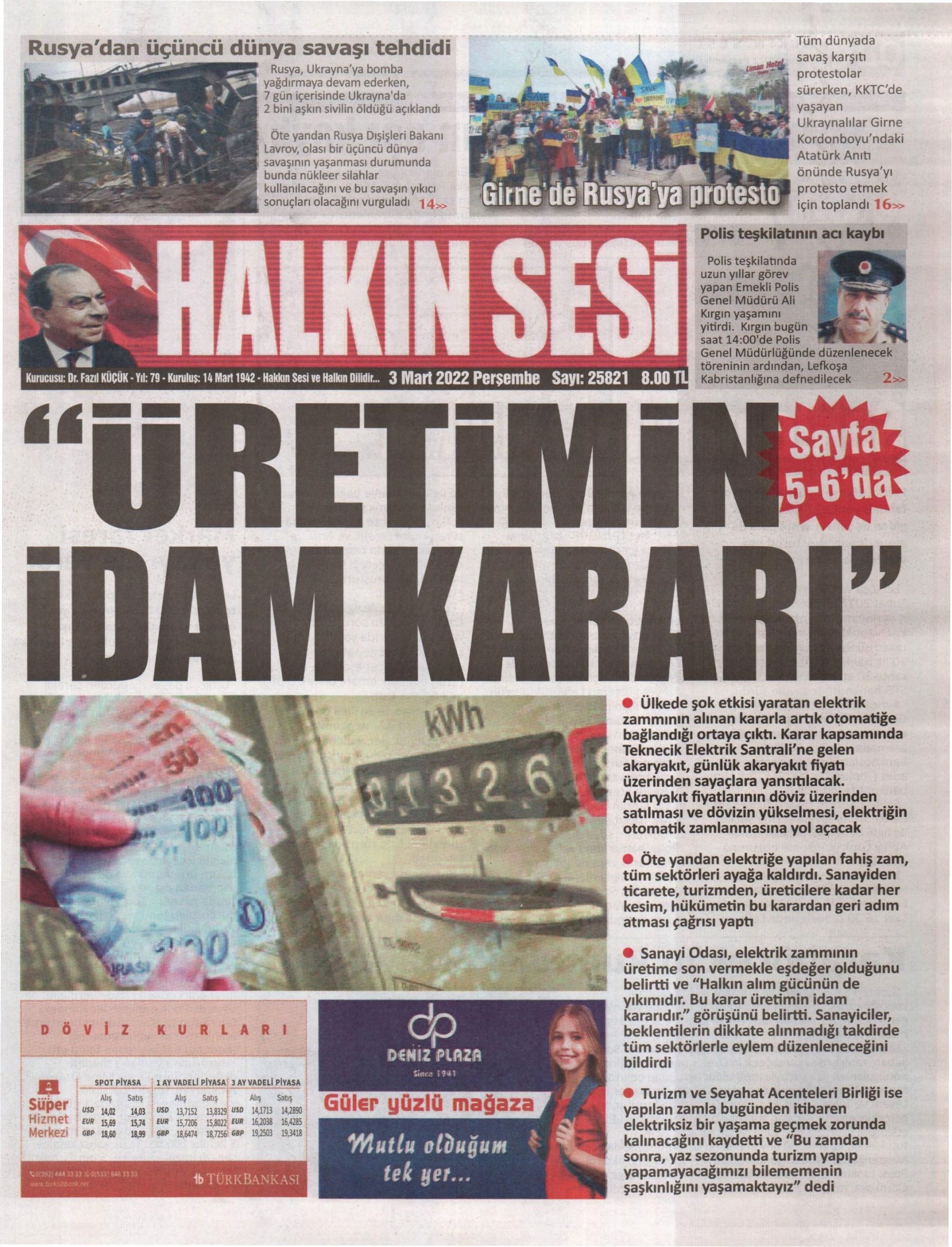 3 Mart 2022 Perşembe gazete ön sayfaları: